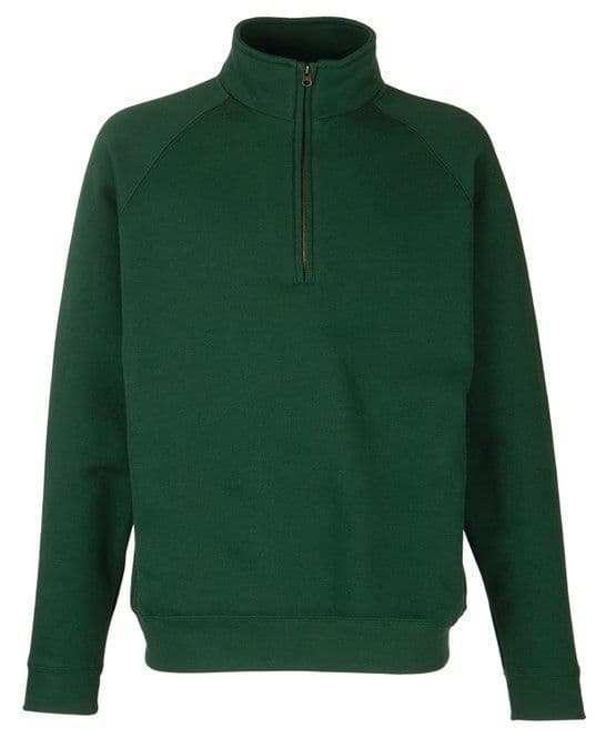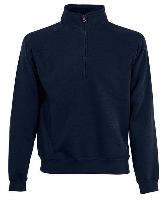 ¼ zip neck. Metal YKK zipper and puller. Ribbed cuffs and hem. Worldwide Responsible Accredited Production (WRAP) certified production. Soft cotton faced fabric . Brushed inner fleece.
