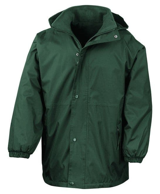 Outer: 200gsm StormDri 4000 polyester with PVC coating. Reverse: 280gsm Active fleece by Result®. 100% Polyester